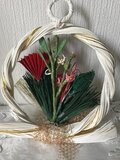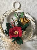 1.5mmの籐に数本の金銀の水引を入れて、リースを作っています。