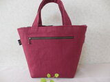 背面はリネン地でスモーキーな柔らかい色味のガーネット色で18cのファスナー付きポケットをお付けし機能的に仕上げました。