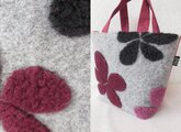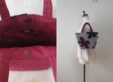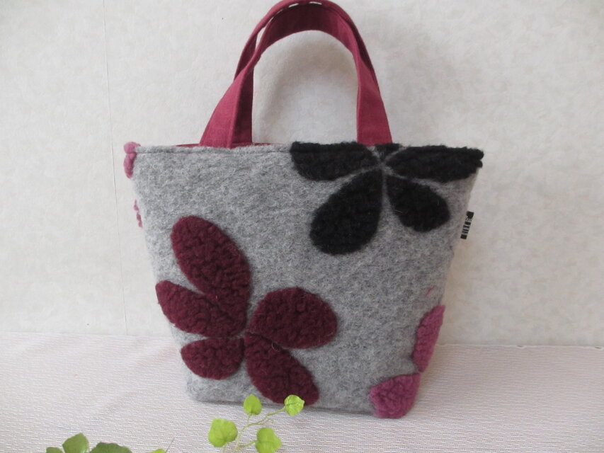 三色からなる大きな花びらがかわいい、ボア・ジャガードで温かさが伝わるような生地でトートを作製しました。