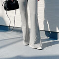 【新作】スタイルアップ!美脚効果抜群!綿100切り替えブーツカットパンツ(ライトグレー)22031GL
