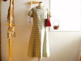 sold フラワーチェックのちょっとお出かけワンピースグレー裏地
