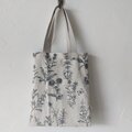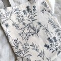 生成り地に黒の濃淡で植物が丁寧に描かれた大人っぽいボタニカル模様です。