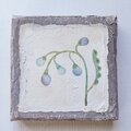 モデリングペースト等でテクスチャーを付けた上に、アクリル絵の具を水彩絵の具のように使用し、淡くやわらかなお色合いにしております。
