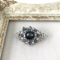 チェコガラスの周りを煌めくスワロフスキーとマットなパールで立体的に編み込み小さなバラを飾り付けました。