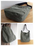 ウオッシュ加工が施された Khaki カーキ色の帆布生地を使い、 斜めがけ ショルダーバッグ を作りました。