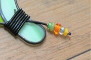 ガラス玉やアンティークビーズを飾り華やかな雰囲気に仕上げました。