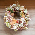 水無月紫陽花と木の実、バラの実とカワラハハコの秋冬ミニリース