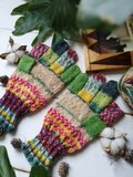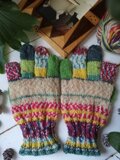 春の花をまとめた花束のような、手編みのスマホ操作対応5本指手袋です。