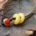 紐の先端には、丸みがあるミゾラムカーネリアンを使用しました。