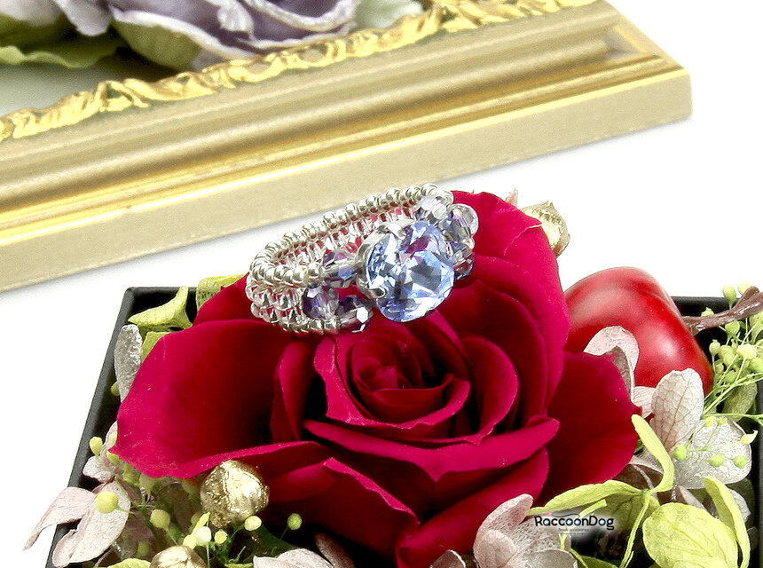 ビーズ,リング,コスチュームジュエリー,ビーズアクセサリー,ビーズリング,プレシオサ,クリスタル,ブルー