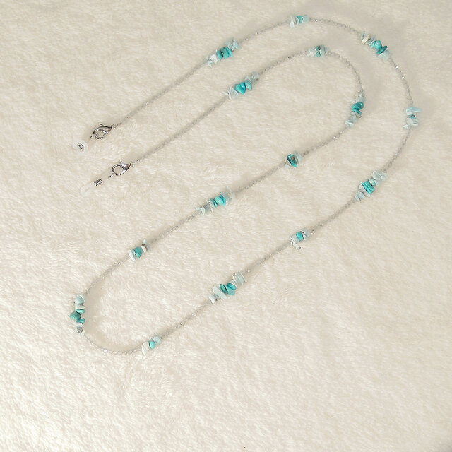 ラリマーとターコイズ(トルコ石)、ラブラドライトを使った天然石のメガネチェーンです。