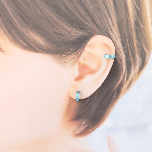 フラットリングイヤリング・イヤーカフ・フェイクピアス・ノンホールピアス・イヤークリップ直径約11㎜幅約3㎜サイズに、ソーダブルーカラーが登場いたしました