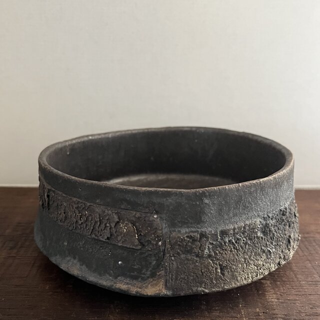 鄙びた風合いの紬帯を纏った五寸(15㎝)の鉢です。