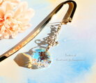 透かし模様とオーロラカラーのスワロフスキーオクタゴンを繋いだブックマーカー。