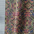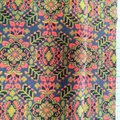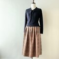 昭和の応接間、暖炉とペルシャ絨毯、そんな風景に似合いそうな一枚です。チャコールグレーにオレンジとオリーブ色のあったかみのある色柄で大人っぽいシルエットです。