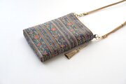 縞に草花模様の入ったシルク帯を使ったスマホショルダーバッグです。