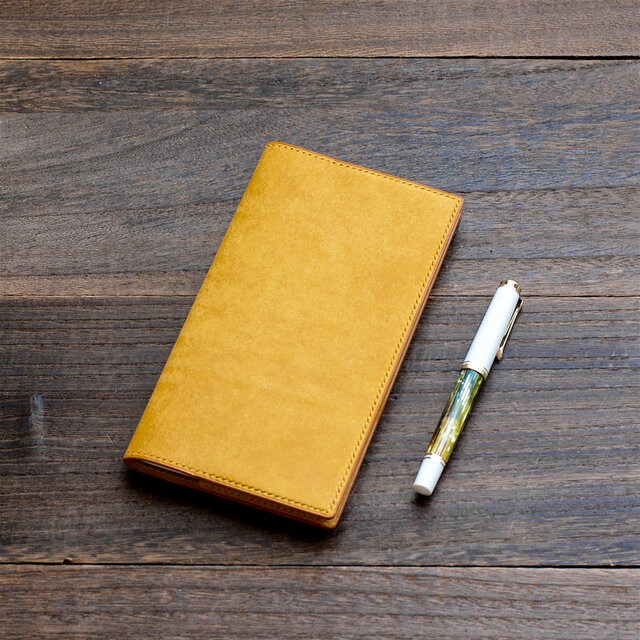縦長で小さめなサイズのノートでクラシックな雰囲気のあるノート用のレザーカバー。