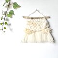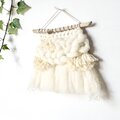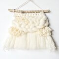 みるく色のふわふわクロスブレッドをたっぷり使用し、極太モヘアやファンシーヤーン等と組み合わせた優しく可愛らしいタペストリー。