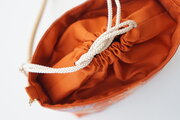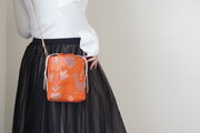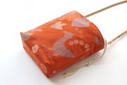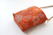 花鳥模様の橙色のシルク帯で製作したショルダーバッグです。