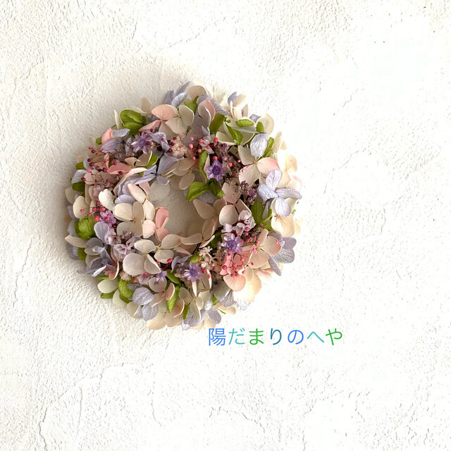 花材・・・アジサイ、カスミソウ、モリソニア、クリスパム (プリザーブドフラワー)