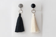 手織りイヤリング(三河木綿)/タッセルチャーム付き/スタッドイヤリング/ブラック×ホワイト