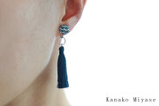 手織りした生地を封じ込めたタッセルチャーム付きイヤリング【受注制作】