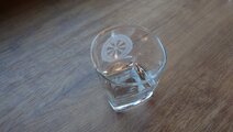 車紋の一種である「源氏車」をロックグラスに彫刻しました。