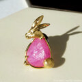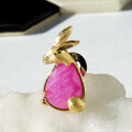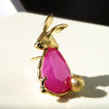 18金コーティングを施した兎に、ファセットカットのルビーを留めたブローチ。
