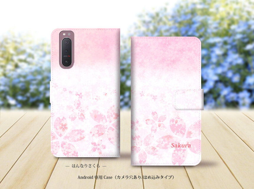 Android専用 手帳型スマホケース(カメラ穴あり/はめ込みタイプ)【はんなり桜】名入れ可