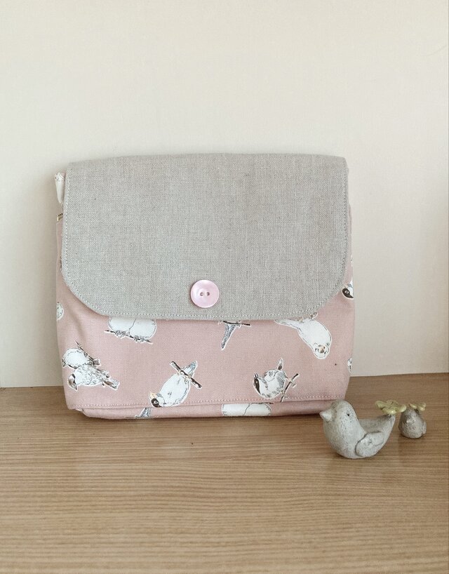 素材は、コットンオックス、ふたの無地部分はリネンキャンバスです。いずれも丈夫な素材なので、デイリー使いにぴったりです。