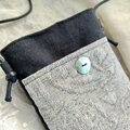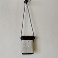 黒リネンとイタリア製エンボス織生地を組み合わせたスマホショルダーです。