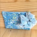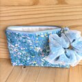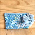 リバティ シュシュチャーム付き フラットポーチ ポケットあり <Felda>(フェルダ)ターコイズ