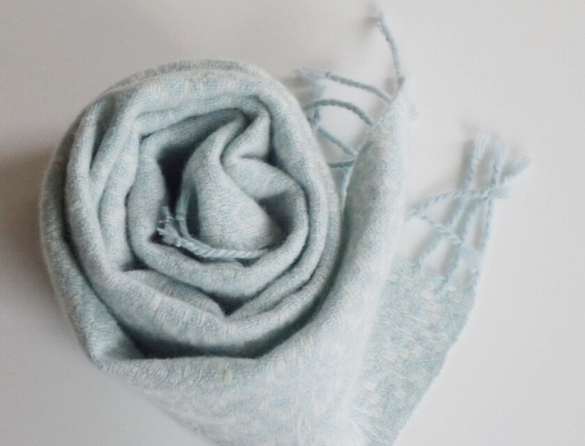 ショールなので、少し重いことを覚悟していましたが、驚くほど軽く、暖かくずっと巻いていたいです。織りの模様も素敵で、明るい気持ちになります。大切にします。ありがとうございました。