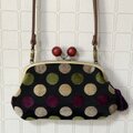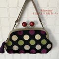 スペインからの輸入生地 ドット柄で作りました大きい木玉親子がま口長財布です