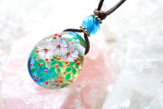 バーナーワークの技法で制作した、手作りのガラスのペンダントです。