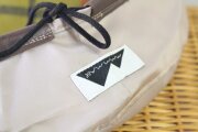 被り口にサイズ調節のパイピングを牛革であしらいました。