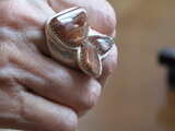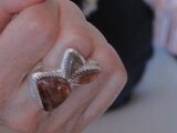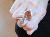 それぞれ形の違うサンストーンを三つ組み合わせて、うさぎのリングを作りました。