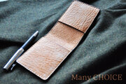 お品無事到着いたしました。 ラッピングもとてもおしゃれで、ワクワクしながら開封させていただきました。 想像通りとても素敵な色の革で、手触りも良く、これから手に馴染んでくるのが楽しみです。 ペンを挟んでもシルエットが崩れず、おさまりが良いのも気に入っています。 長く、大切に使わせていただきます!