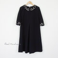 [予約販売] ヨーロッパブラックリネンケミカルレースフラットカラーフロントタックワンピース