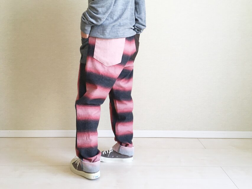 わがままなお願いをしましたが、丁寧に対応していただきました。 起毛した柔らかな生地で、とても着心地がいいです。 ストライプなど大胆な柄合わせですが、同系色でまとめてあるので落ち着いた雰囲気で、(アラフィフなんですけどね)抵抗なく着ることができます。 大きなポケットもありがたく、大活躍のパンツになると思います。