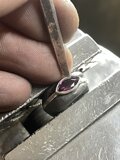 マーキスカットの留め方とリング全体のヤスリ目仕上げで、