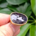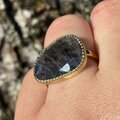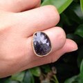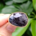 サファイア 濃いグレー 変形オーバル チェックカット シルバーSV925リング