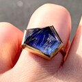 ルチルクォーツ × ラピスラズリ 変形横長5角形 立体的なカット ダブレット シルバーSV925リング