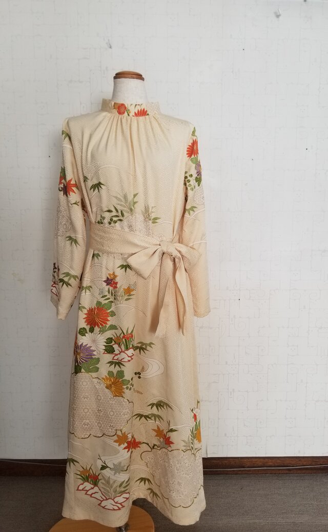 淡い黄色がかったオレンジ色の訪問着をリメイク致しました。