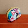 三角モチーフ 綿パッチワーク楕円型ポーチ(中)