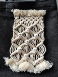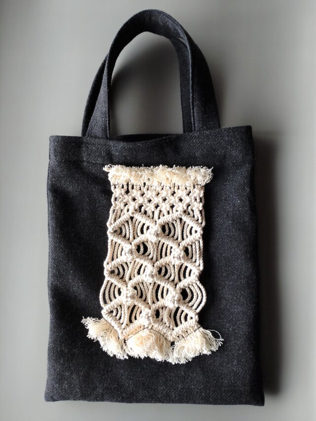 必要な物が収まるサイズのバッグに、インパクトのあるマクラメのモチーフをのせました。