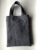 黒に近いチャコールグレーのしっかりと厚みのある素材で、斜めに織り柄が見えます。
