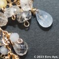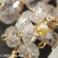 短い方のチャームは、天然ジルコンのボタンカットを下げ、一番下に淡い淡いブルーのサファイアを一粒下げました。