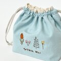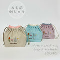 #花 #手描き #刺しゅう #名入れ #名前刺繍 #シンプル #単色 #無地 #女の子 #お弁当袋 #給食袋 #歯ブラシ入れ #小さめ巾着 #入園準備 #入学準備 #小学生 #幼稚園 #保育園 #オーダー #ボタニカル #ナチュラル #麻 #刺しゅう巾着