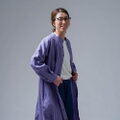 麻 Linen リネン リネンドレス リネンワンピース リネンワンピ シャツワンピ シャツ ロングシャツ 前開き 羽織 アウター カーディガン カーデ 着こなし 重ね着 ママ ママコーデ 無地 無地ワンピ ラベンダー色 紫 薄紫